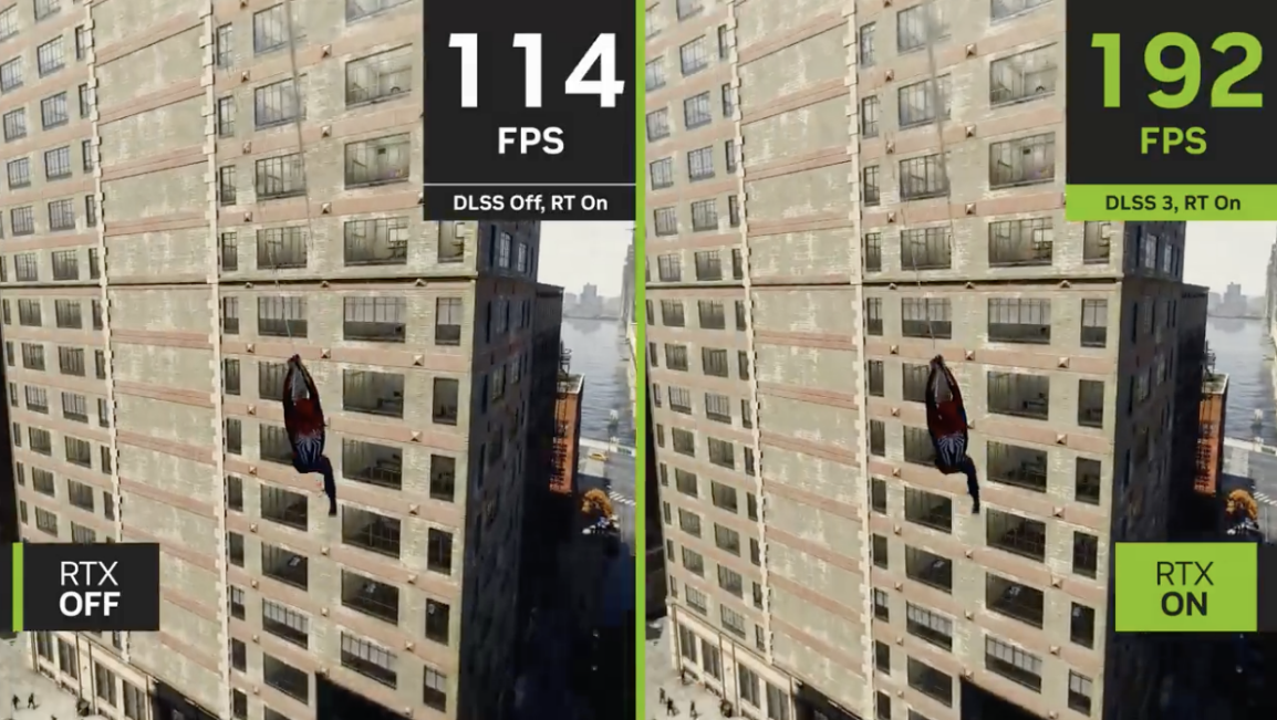 DLSS是AI驱动图形领域的革命性突破,可大幅提升性能。DLSS 3由GeForce RTX 40系列笔记本电脑GPU所搭载的全新第四代Tensor Core和光流加速器提供支持,可在不影响画质和响应速度的前提下,利用AI创造更多高质量帧,实现速度穿越!