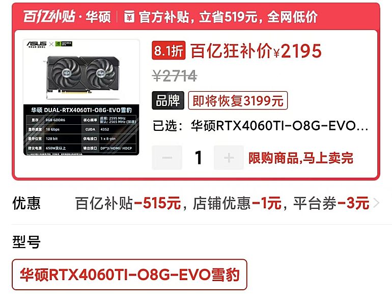 晚买享折扣,不到2200元的RTX 4060 Ti 8GB,现在还能买吗?