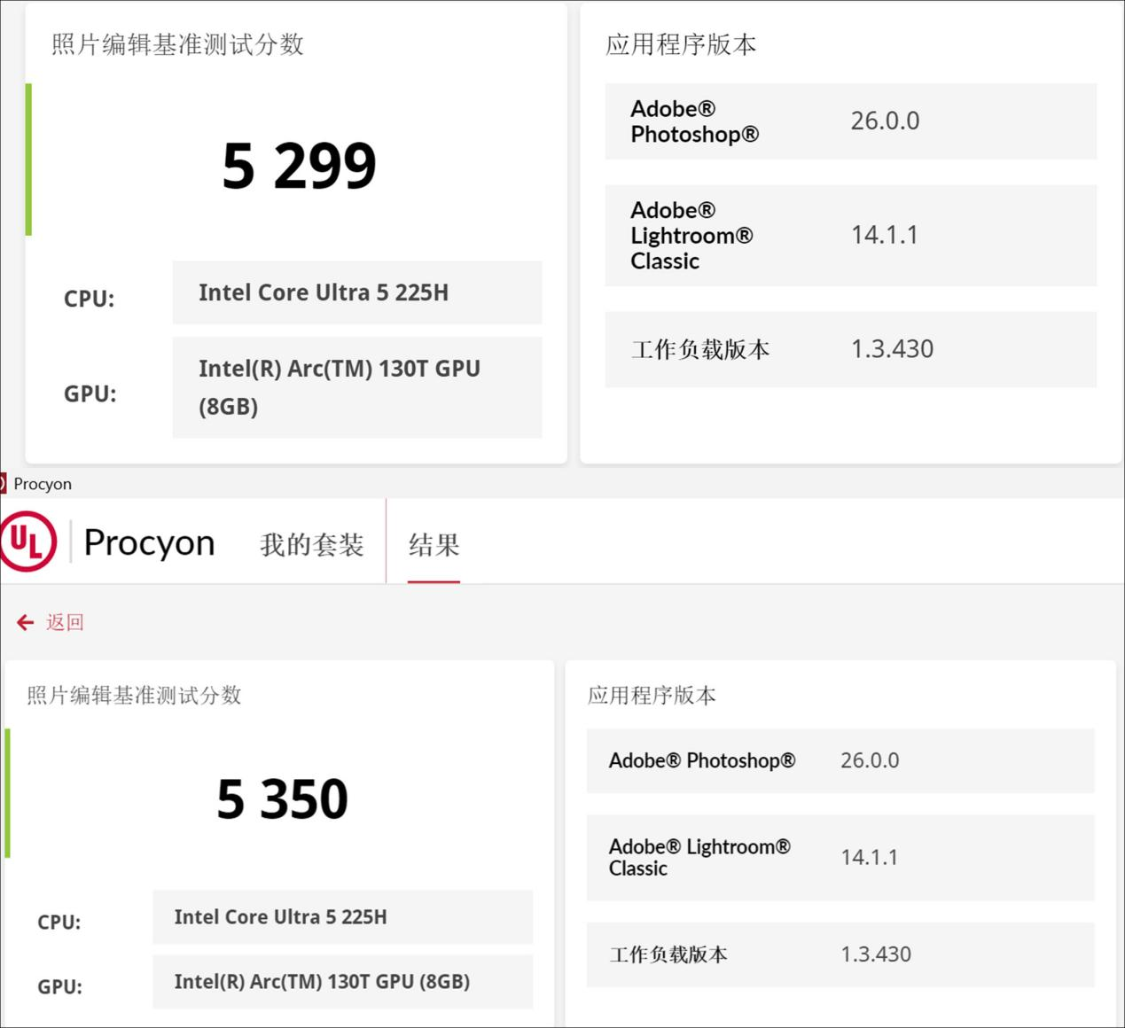 ▲针对PS和LR的照片编辑应用测试中,星Book Pro 14和星Book Pro 16的成绩也几乎没有差别(星Book Pro 16略高一点儿)。