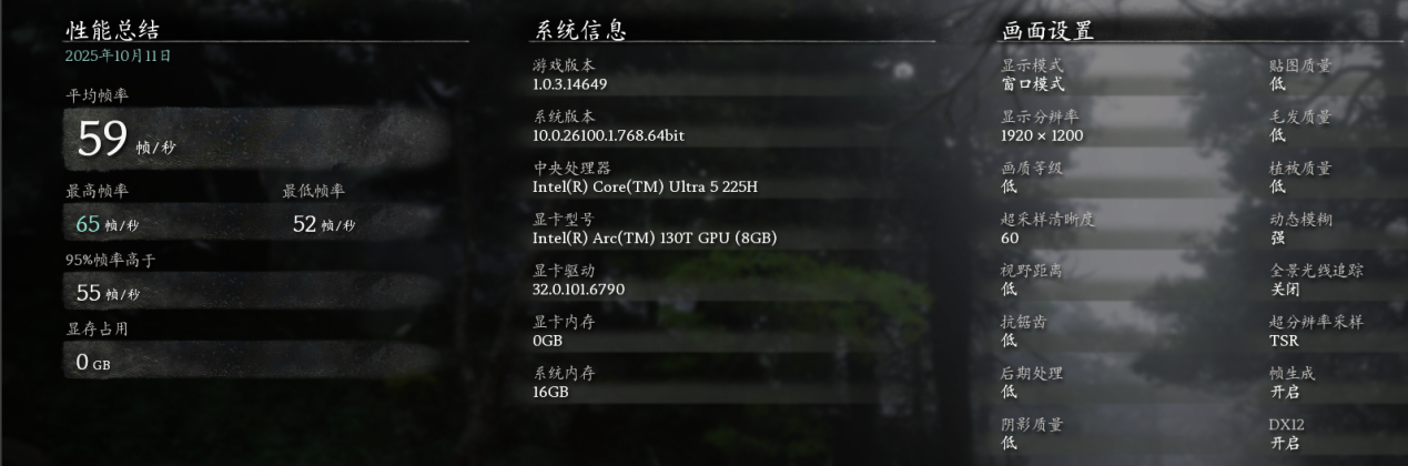 ▲游戏实战测试,为《黑神话:悟空》,画质设置为1920×1200分辨率低画质,开启帧生成加持下,两款机型的平均帧速为60帧上下,已经达到了可玩的级别。