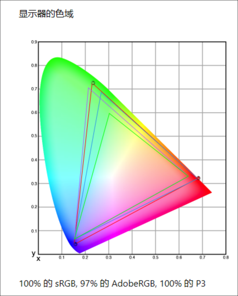 ▲实测星Book Pro 14色域和色准:100%sRGB、100%P3、97%AdobeRGB,妥妥的广色域屏。笔记本屏幕出厂的色准平均值为0.94,SDR模式下最大亮度为421尼特,应对日常使用、视频播放、图片处理、都能胜任,对于有DCI-P3色域需求的用户也没有问题。