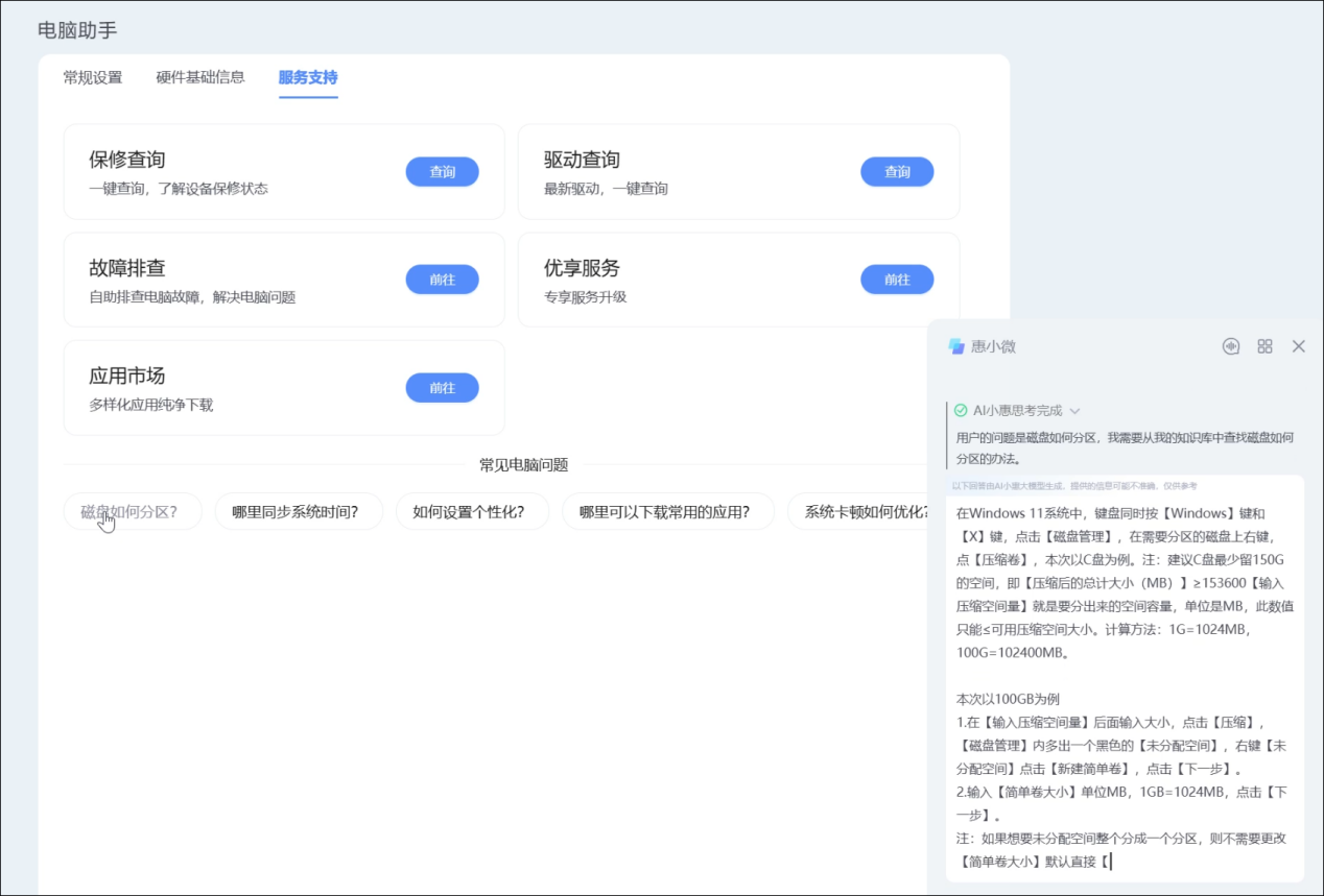 ▲AI电脑管家给出了如何为磁盘分区的具体方法和步骤