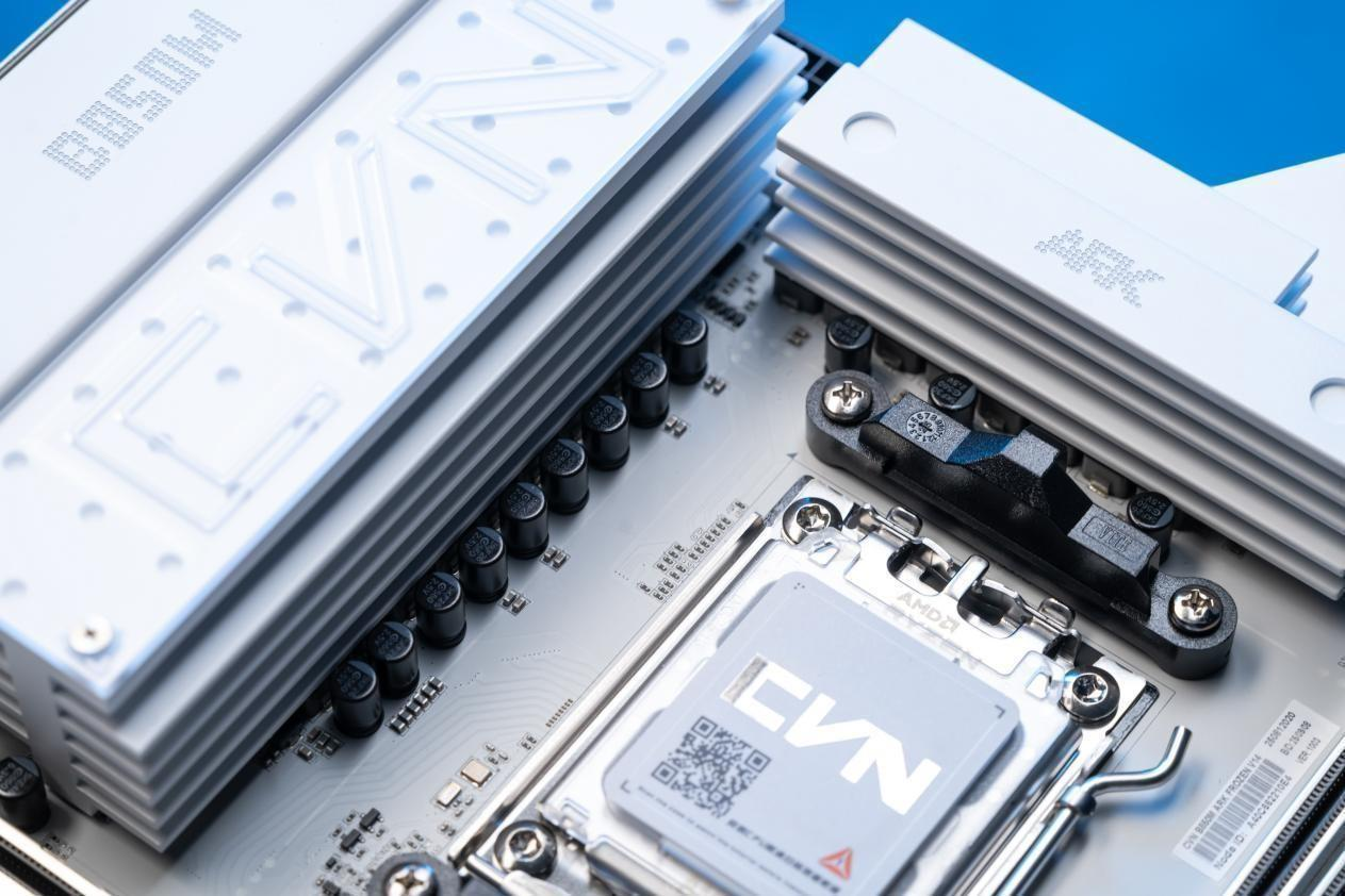 简单总结一下。CVN B850M ARK方舟以全新的星舰形象打造,白色寒霜装甲配合可DIY的星图铭板,为玩家提供了极具个性化的外观选择。主板采用了豪华而扎实的用料,特别是14(80A)+2+1的供电规格与8层服务器级PCB,已经超越一众同级竞品,轻松驾驭旗舰级锐龙X3D处理器。主板的内存超频更是支持到了DDR5 8400水平,板载PCIe 5.0 M.2轻松跑满旗舰PCIe 5.0 SSD传输带宽,对高端硬件的支持能力已经达到了豪华旗舰的水准,而价格方面仅与主流甜品持平,性价比十分抢眼。特别值得一提的是,CVN B850M ARK方舟还板载独立时钟芯片,支持处理器外频调节,而这也是同级产品很少搭载的实用功能,对于追求处理器性能超频极限的玩家来说极具吸引力。总而言之,如果你想要搭建一套锐龙X3D发烧主机,那么CVN B850M ARK方舟显然是一款品质和性价比都非常出色的选择。