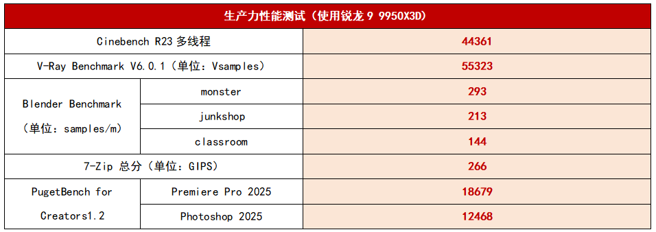 在CVN B850M ARK方舟强大供电能力支持下,持续满载功率跑到220W左右的锐龙9 9950X3D在生产力方便的表现也是旗舰级的,它不但能满足发烧级游戏玩家的高帧率需求,也能提供3D设计、图片处理和视频剪辑方面的强大生产力。