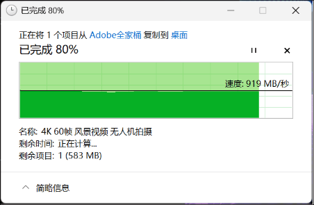 利用全功能USB-C进行高速文件传输,速度达到了牛叔硬盘盒上限1GB/s左右。