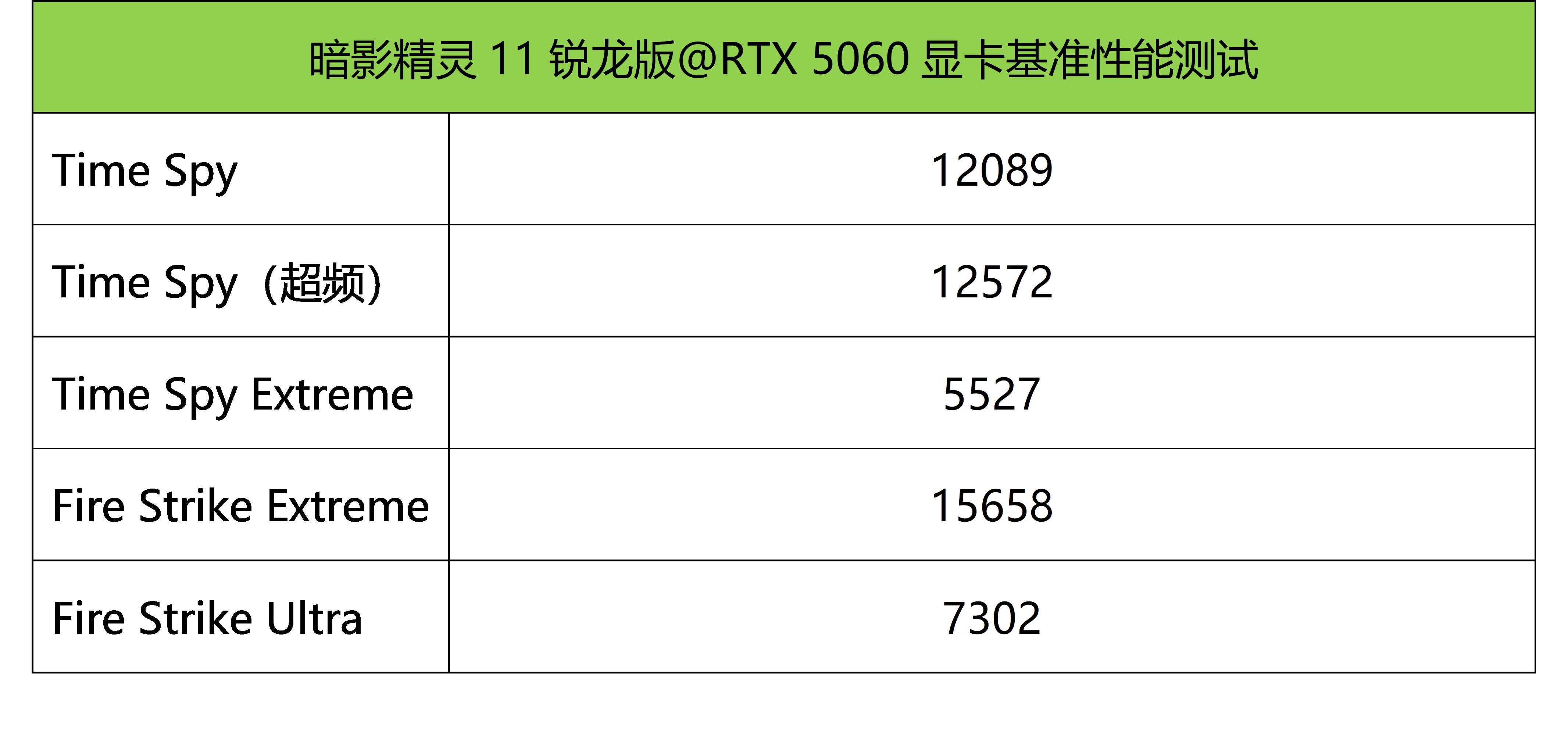 测评款暗影精灵11锐龙版搭载的是RTX 5060笔记本独显(另外该系列还有RTX 5070款),具备115W满功率性能释放,测试环境同样为大师模式。