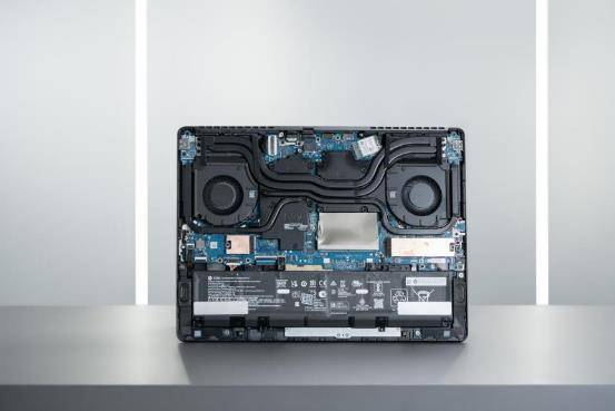 下图是暗影精灵11锐龙的拆机图,采用的是双风扇4热管的散热模组,加上高导热相变硅脂、全新优化的风道设计,压住高负载的锐龙9 8945HX+RTX 5060还是很轻松的,且能将风扇噪声控制得比较优秀。此外,在扩展性方面,机身预留有内存插槽和M.2 SSD,扩展性没问题,但需要注意,该机的SSD升级规格是M.2 2230(可转接M.2 2280)。