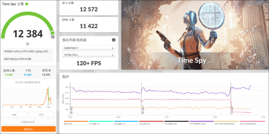 在大家熟悉的3DMark Time Spy场景下,暗影精灵11锐龙版的显卡分数是12089分。另外,在OMEN Gaming Hub中,该机还提供了一个“高级性能调整”的GPU超频选项,将频率拉升200MHz,成绩则为12572分,对于爱好探究电子产品的用户来说,具备一定的可玩性。而对于普通小白用户,牛叔建议大家直接使用预设的大师模式即可。