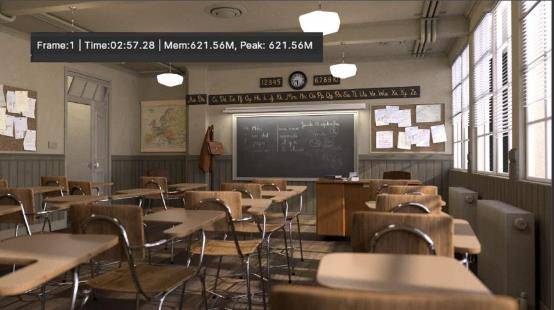 接下来看看实际应用测试,Blender渲染满载测试,测试项目为耗时相对较长的Classroom场景,应用版本为4.0,暗影精灵11锐龙版的渲染总耗时约2分58秒,跑进了“3分钟俱乐部”,在我们的测试数据中,该项测试成绩在3分钟以内的都算强劲机型。