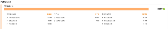 ▲PCMark 10的办公性能测试包含了常用基本功能。暗影精灵11锐龙版分数是8059,其中,数位内容创作分数达到了14173——可高效应对各类创作类应用。