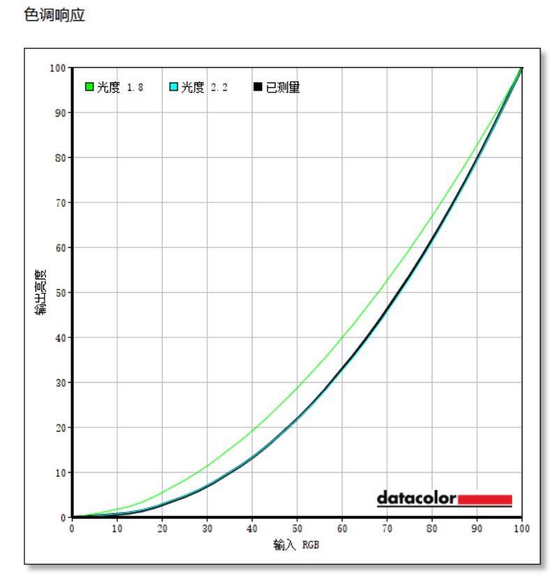 对比度测试中,雷鸟F5 23.8英寸在最高亮度下可以达到4360:1,这是相当出色的表现。色调响应方面,测得该显示器的色调响应与Gamma2.2的曲线拟合度很高,这表明其色调响应表现优异,能够精准地还原画面的亮度和对比度。亮度测试方面,雷鸟F5 23.8英寸在SDR模式下的最高亮度为310尼特左右。其HDR亮度最高值在500尼特左右,整体来看该显示器的亮度表现非常不错,能够为高亮度HDR视频观看和制作提供极大的帮助。