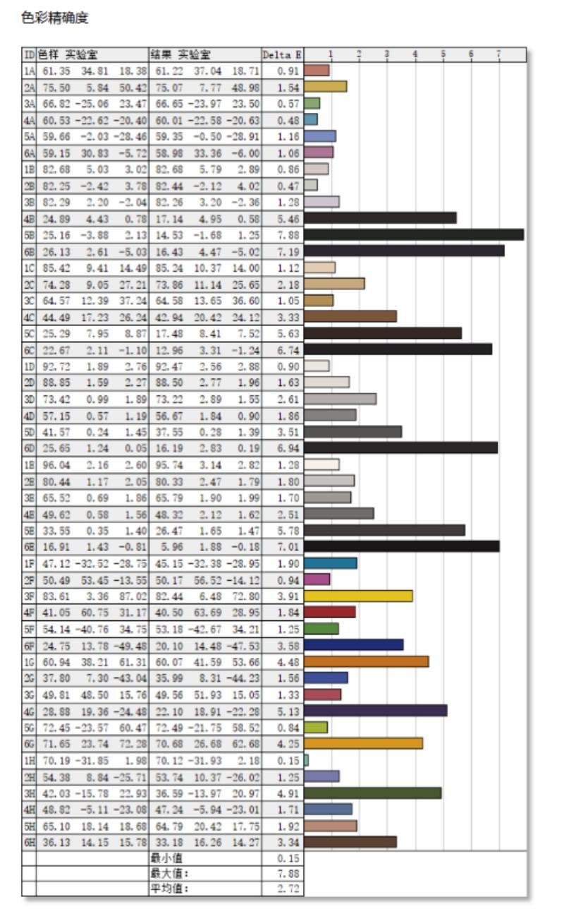 接下来,我们借助Spyder X2 Ultra校色仪对雷鸟F5 23.8英寸进行色彩、色准测试,测试前我们将显示器恢复出厂设计并预热一个小时。从测试结果来看,雷鸟F5 23.8英寸在默认的标准模式下的sRGB色域覆盖为100%、DCI P3色域覆盖为91%,色域覆盖表现非常出色。色准方面,我们采用了48色方案的色彩精准度测试,测出显示器的Delta E平均值为2.72,只能说中规中矩。