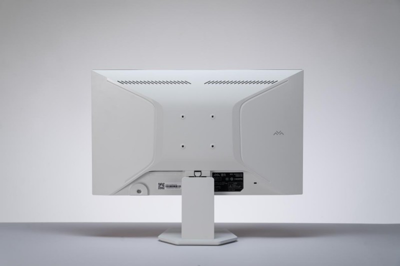 雷鸟F5 23.8英寸的背面用流线型线条打造出了如羽翼般的弧度,有蓬勃向上、操作如飞的寓意。支架和底座也用简单的线条勾勒出简约的轮廓,提升了产品的设计感和辨识度。其中底座前窄后宽,在满足摆放稳定性的同时,也减少了对桌面空间的占用。塑料材质的磨砂表面既有不错质感又不易沾染指纹。另外,显示器并没有采用人体工学支架,屏幕只支持俯仰调节。背面还设置了VESA孔位,便于安装支架或者是壁挂。