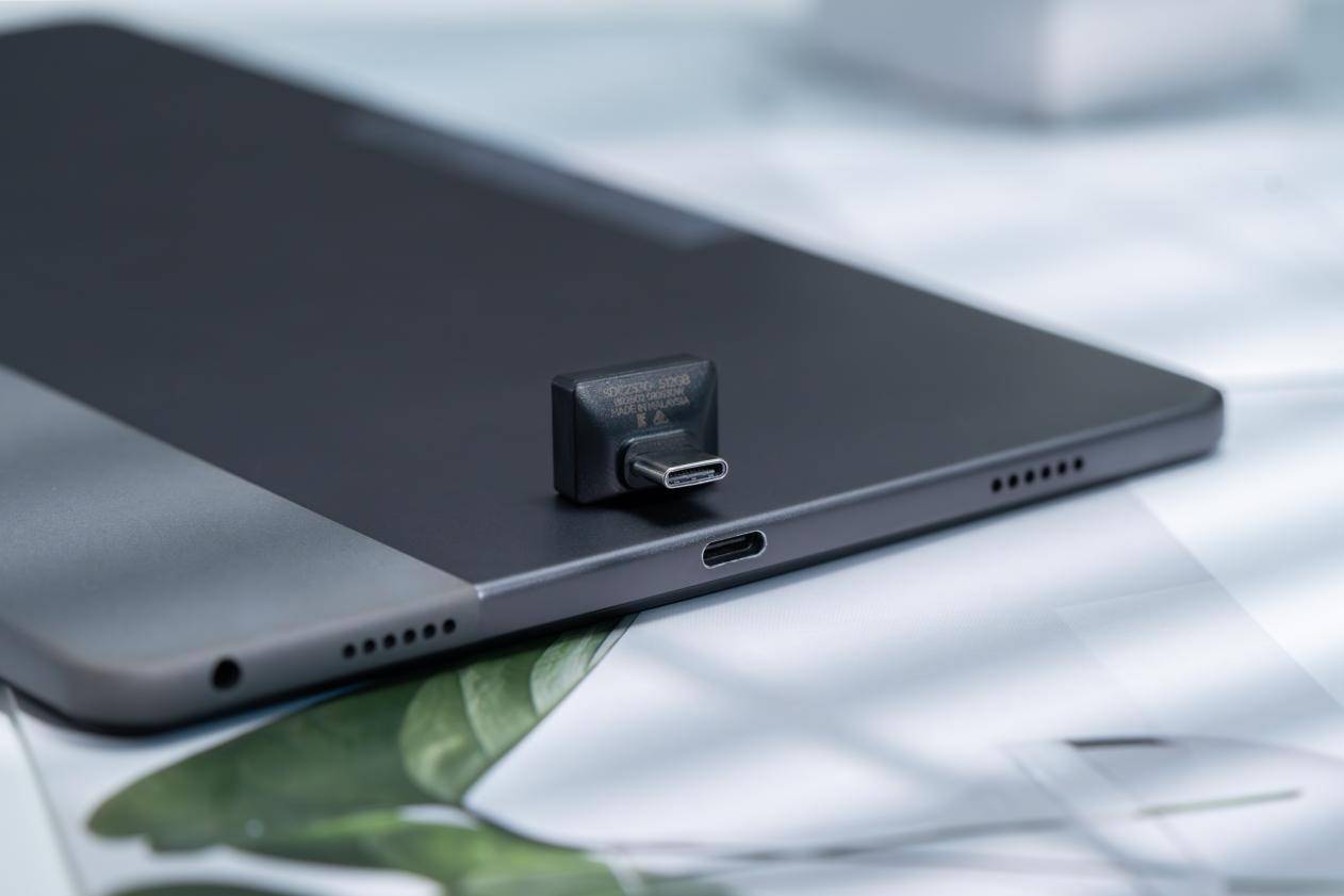 另外,即使是插在USB-C接口的超薄平板电脑上,也不会额外突出很多,充分体现出这款闪存盘“一相连,便相依”的特性。也正因为它的“无感”设计,我们在使用过程中就无需经常插拔,不仅可以有效保护闪存盘接口,也能确保数据存储过程不断流。